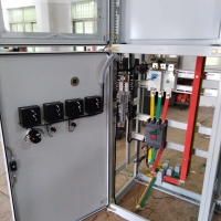 单面前开门的配电装置。其基本结构采用钢板折弯及角钢焊接而成。作为电源切断与接通操作之用,门上可装设操作按钮,指示灯及显示仪表,打开箱门后,配电箱内部设备全为敞露便于检修维护,本配电箱装有空气断路器,熔断器作为短路保护外,还装有接触器和热继电器。门鱼壳体均焊有接地螺钉,确保壳体与地连接可靠。